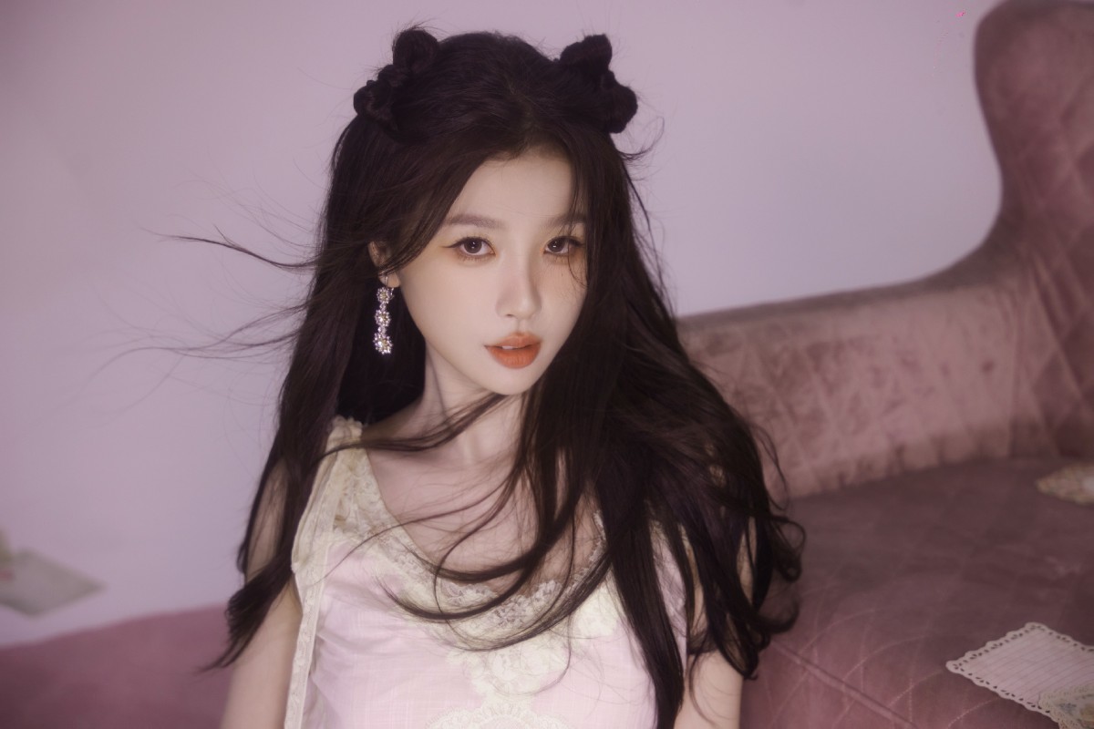 双蝴蝶结发髻是减龄与雅致的奇妙平衡。头顶对称的蝶形盘发,像从童话里偷来的设计,既保留了少女特有的俏皮,又通过规整的弧度为整体造型注入一丝端庄。更妙的是垂落的长发:微卷的发尾带着慵懒的飘逸感,打破了发髻的“规矩”,让“静”与“动”在发丝间形成对冲美学。没有繁琐的发饰点缀,仅凭线条的疏密与走向,便勾勒出“晚风拂发梢”的意境,仿佛下一秒就要踏入樱花纷飞的庭院。